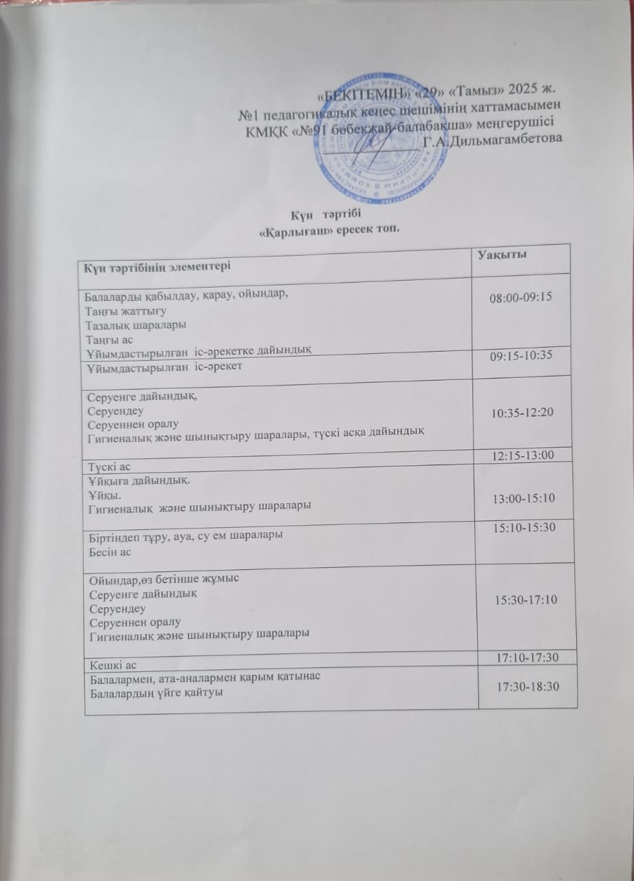 Күн тәртібі 2025-2026 оқу жылы