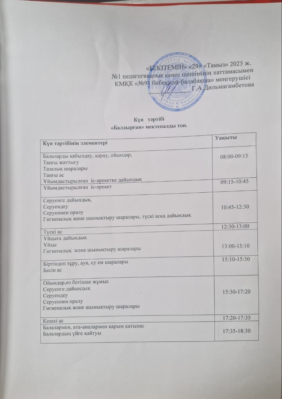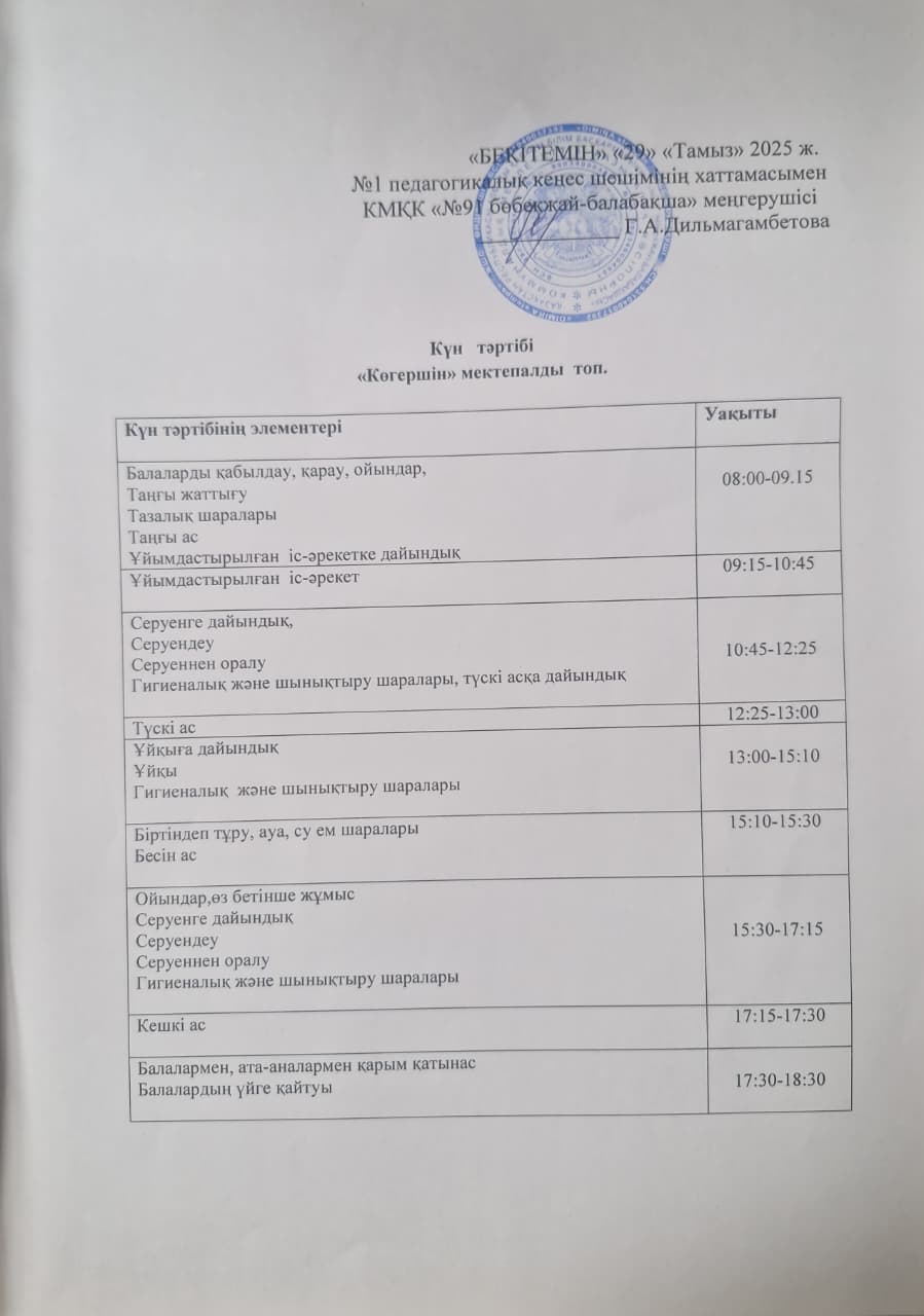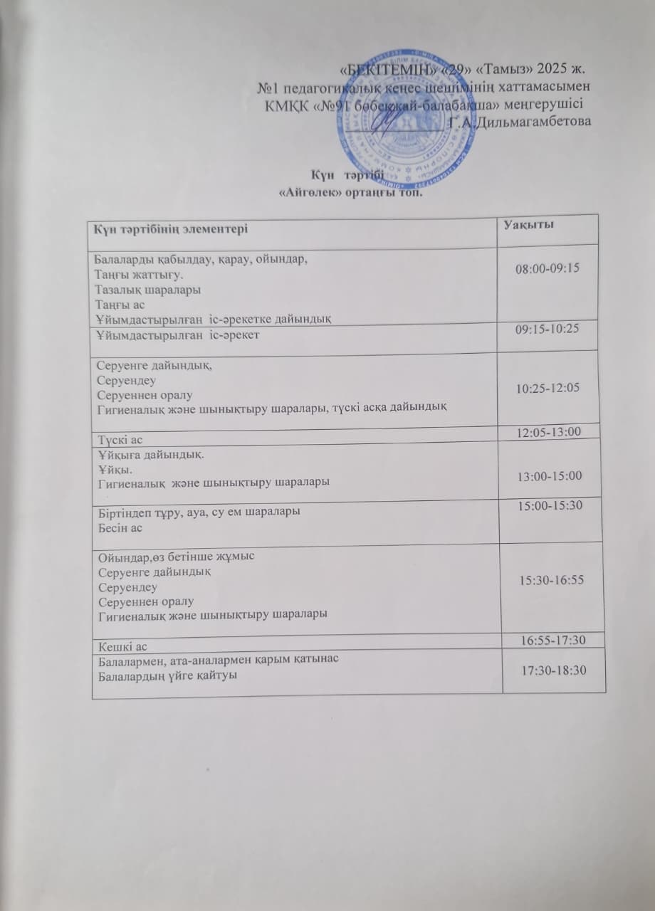 » Күн тәртібі 2025-2026 оқу жылы