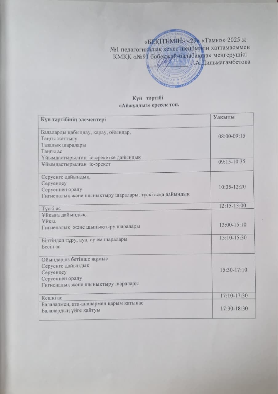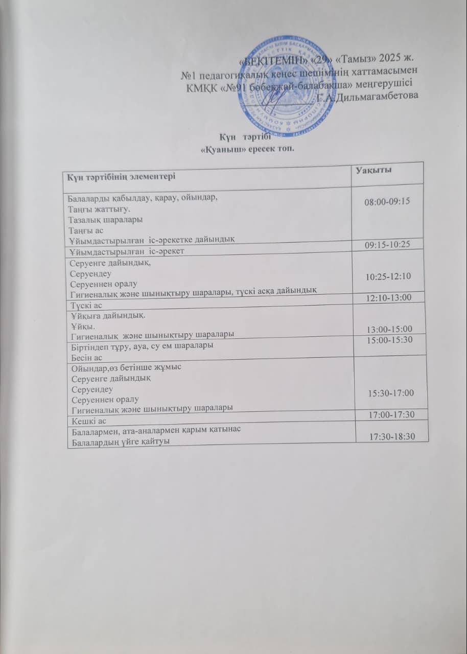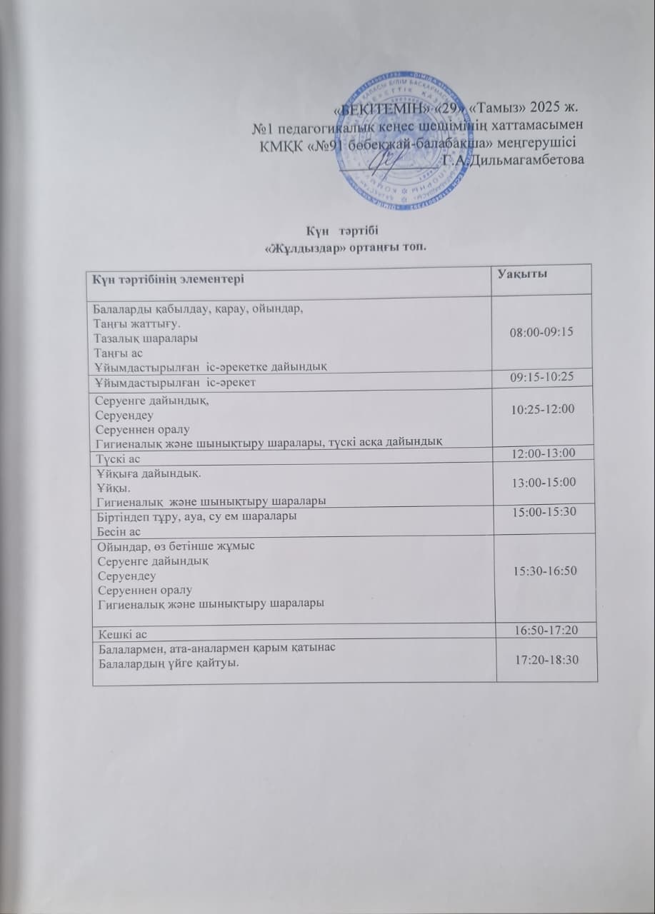 » Күн тәртібі 2025-2026 оқу жылы